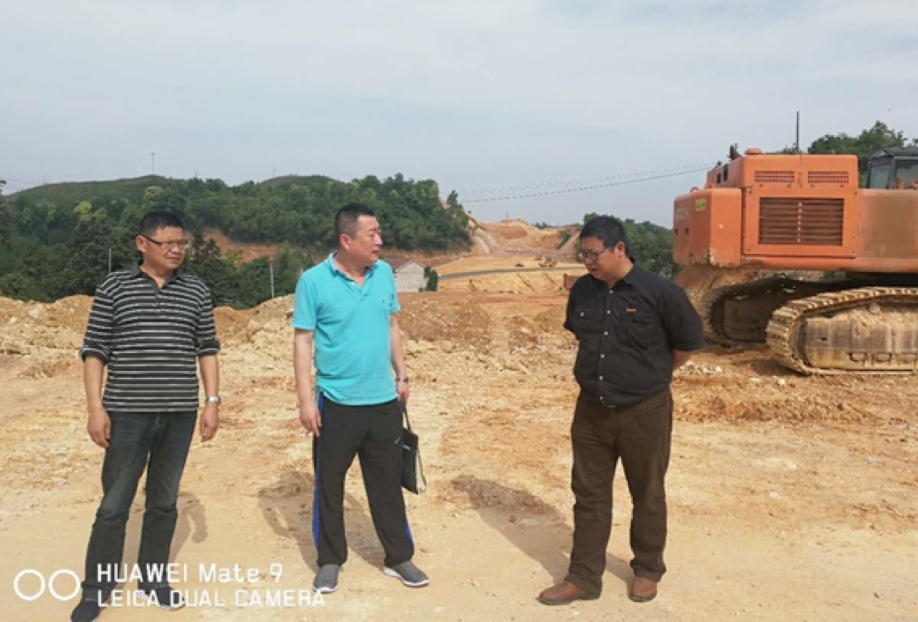 4月底,控股公司领导王学锋(中)到远程公司在建益阳大道西延线3标段,欧江岔至牌口改建工程C标段,泥泉线D标段等项目检查指导工作。