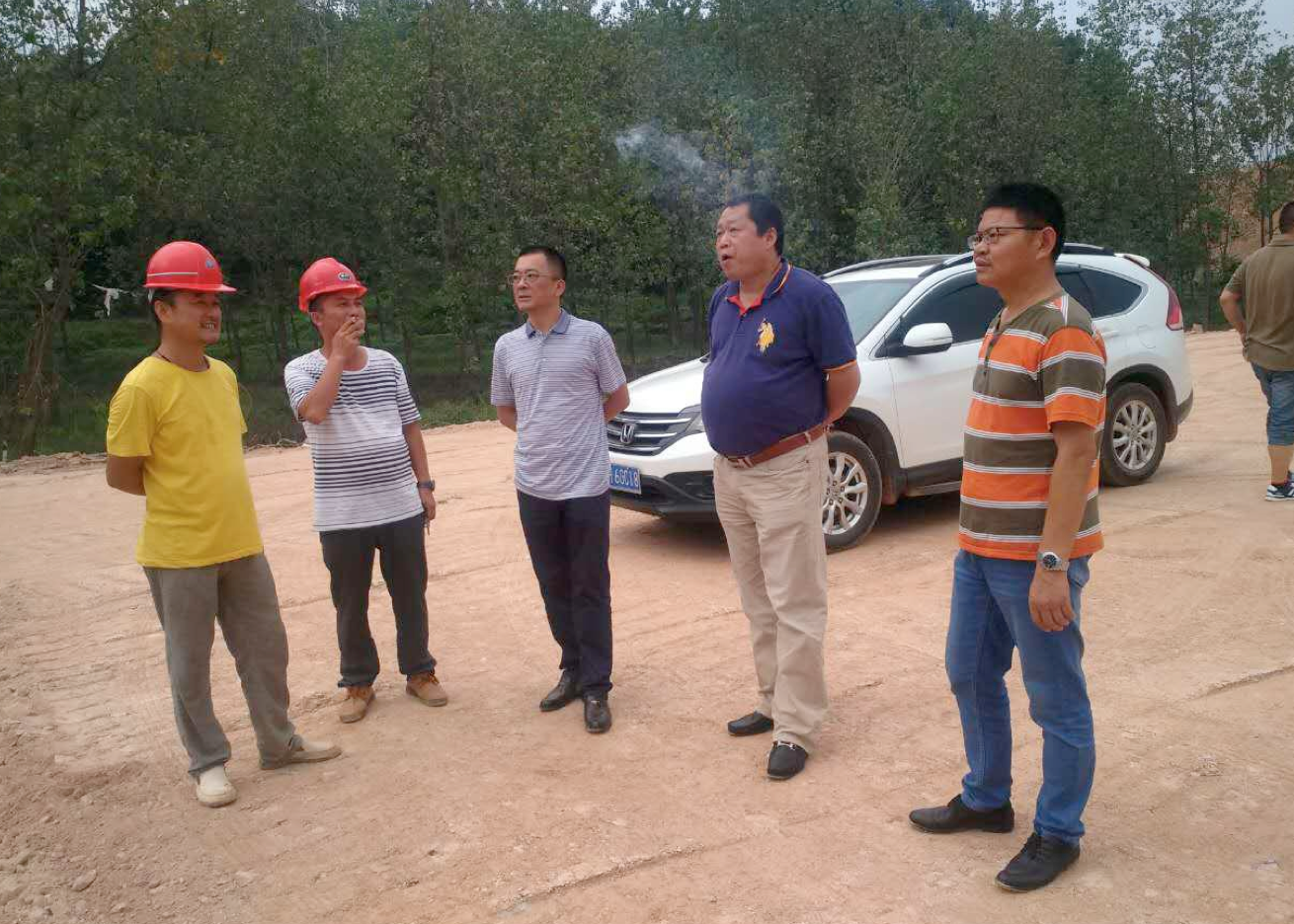 9月5日,董事长郭跃明在公司总经理李敏文(右三)的陪同下,来到在建工地益阳大道西延线三标段的施工现场,对工程进度、质量以及施工现场的安全文明施工等工作进行督查。在听取项目部负责人丁兆尧详细介绍了情况后,郭跃明对工程建设工作提出了具体要求:一是要在确保工程质量的前提下进一步加快工程进度;二是要确保安全文明施工;三是要进一步提升相关资质,拓展业务范围;四是要加强人才储备,为公司长远发展奠定坚实基础。